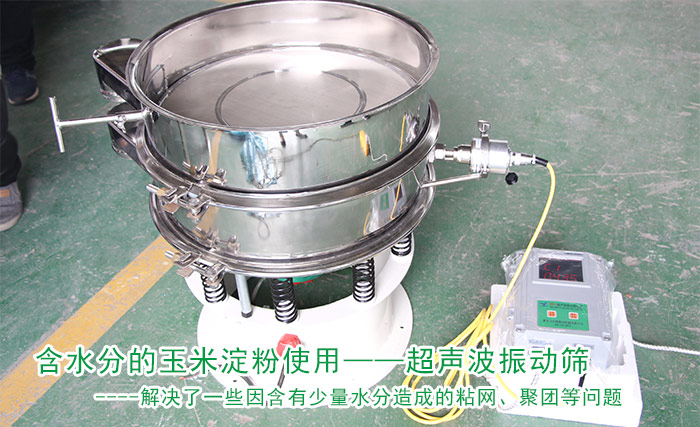 這款振動(dòng)篩加裝了超聲波系統(tǒng),有效解決了一些因含有少量水分造成的粘網(wǎng)、聚團(tuán)等問題。下面小編給您說說使用超聲波振動(dòng)篩來篩分玉米淀粉“好”在哪里?