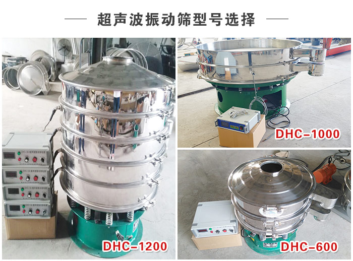【型號(hào)選擇】—— DHC系列超聲波振動(dòng)篩型號(hào)有:DHC-400、DHC-600、DHC-800、DHC-1000、DHC-1200、DHC-1500、DHC-1800、DHC-2000等八種標(biāo)準(zhǔn)直徑型號(hào),可滿足用戶完成每小時(shí)500KG—3000KG的大中小產(chǎn)量篩分。