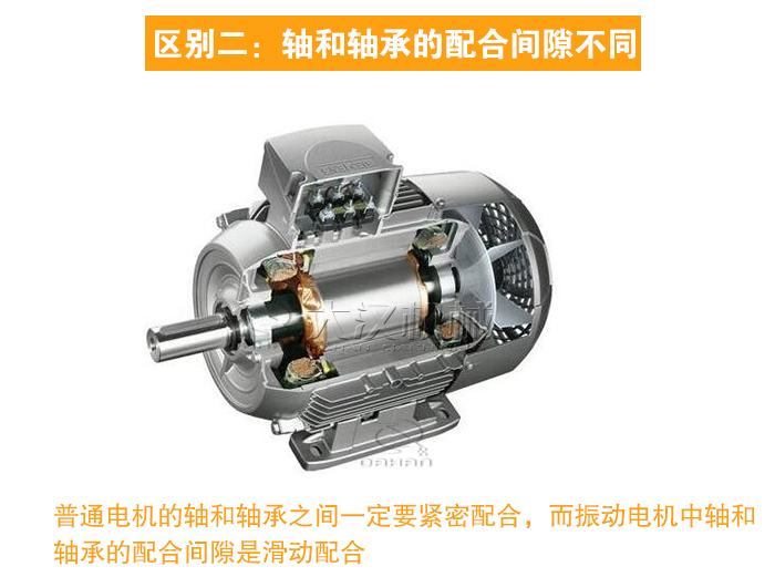 振動電機生產時,軸和軸承的配合間隙就和普通電機是不一樣的,普通電機的軸和軸承之間一定要緊密配合,而振動電機中軸和軸承的配合間隙是滑動配合,中間存在0.01--0.015mm的間隙,在維修時當然會感覺軸會產生左右串動。其實這個間隙配合是有著它的重要作用的。